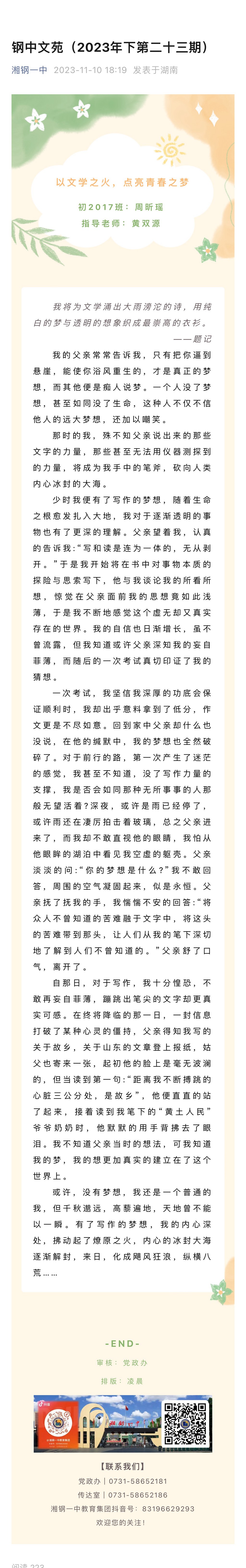 來源:微信公眾號 | 作者:湘鋼一中教育集團 | 發(fā)布時間: 2023-11-10 | 5794 次瀏覽 | 分享到:
